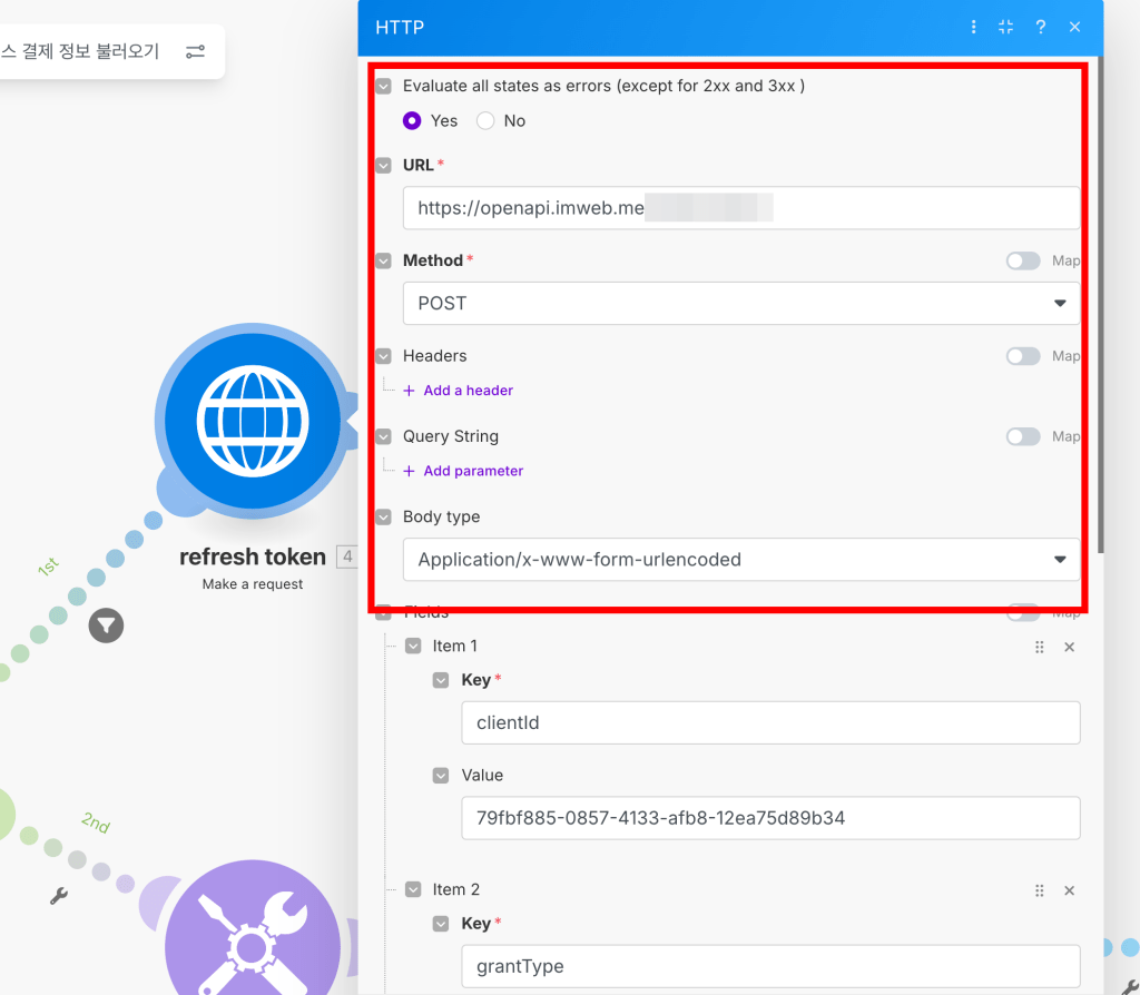 그래서 결제 완료 시점부터 고객 알림까지, 그리고 데이터 기록과 토큰 갱신까지 모두 MAKE에서 이어지는 자동 플로우를 설계했습니다.