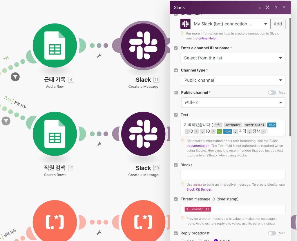 MAKE를 활용한 슬랙 직원 관리 자동화 시스템 구축